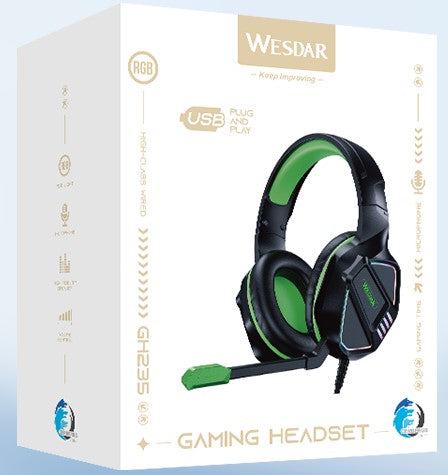 Wesdar - Auriculares HeadSet con Cables RGB Led - Negro y Verde