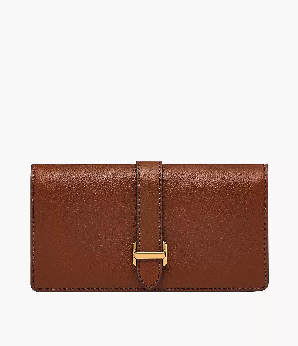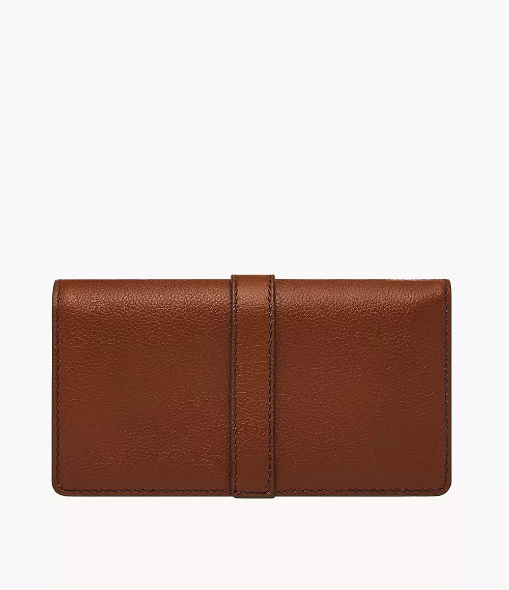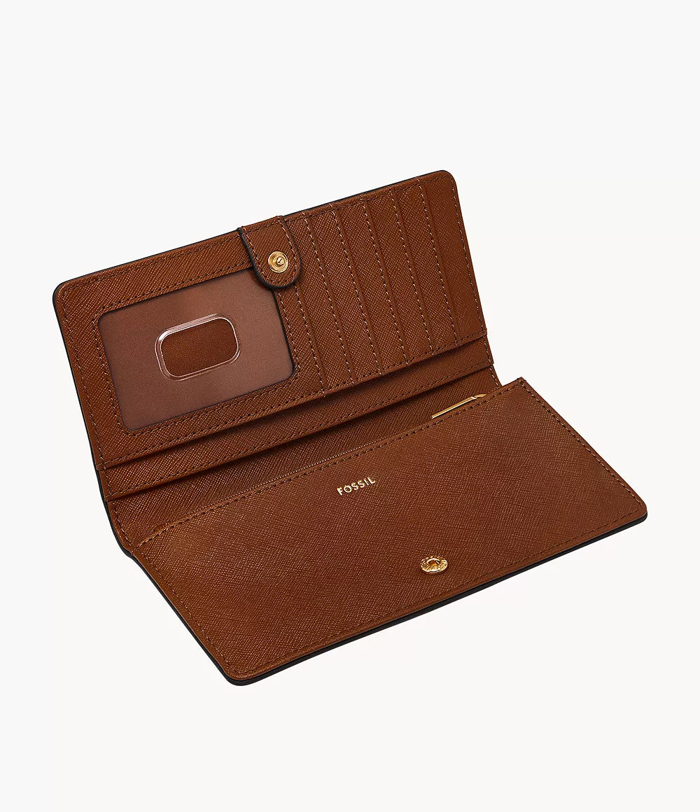 Esta cartera plegable grande de cuero con cierre a presión tiene 1 visor para DNI, 1 compartimento con cremallera y 5 ranuras para tarjetas. Los productos de cuero de Fossil cumplen los requisitos del Leather Working Group para la fabricación responsable.