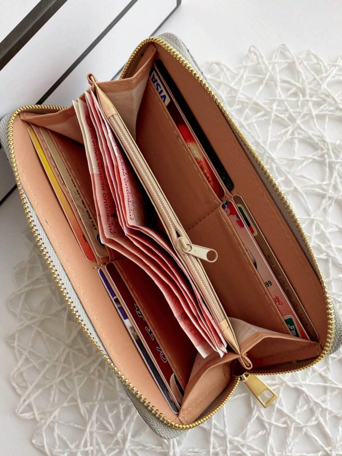 - Interior: Compartimiento interior con cierre de cremallera, monedero, tarjetero