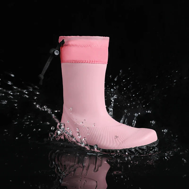 Las primeras botas de lluvia plegables para niños con puntera ancha y material suave sin PVC. Ideales para pasear y trabajar en el jardín, ¡resistentes al barro y al agua!