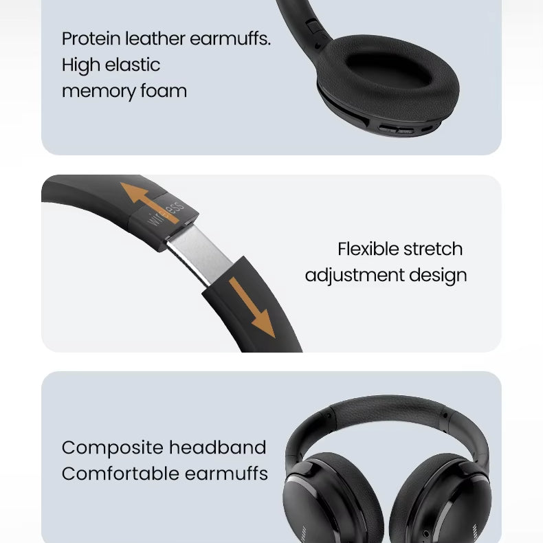 DOQAUS - Audífonos BT 6.0 Hybrid 1 con ANC HiFi - 65H Batería