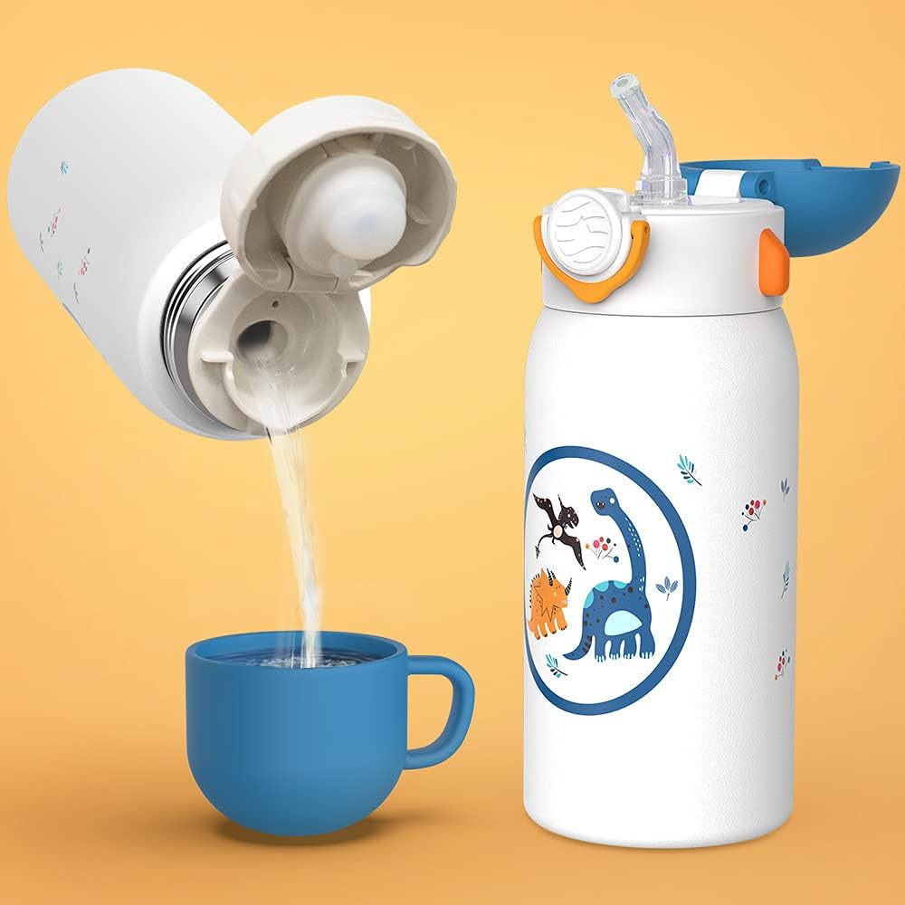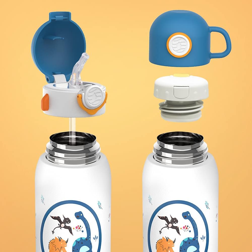 - Diseño bonito: El diseño de dinosaurios y unicornios está en consonancia con la estética de los niños. La capacidad de 600 ml es adecuada para que los niños puedan beber en la escuela y en los deportes al aire libre.
