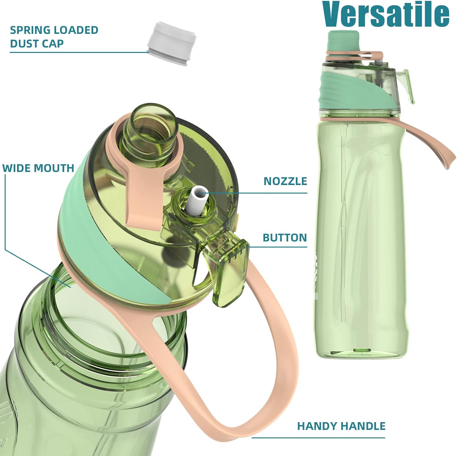 • Botella de pulverización: la botella está fabricada con un dispositivo de pulverización integrado, presiona y rocía niebla para enfriarte después de un largo tiempo de ejercicio. A diferencia de otras botellas de spray deportivas, el dispositivo se puede bloquear en caso de un toque accidental
