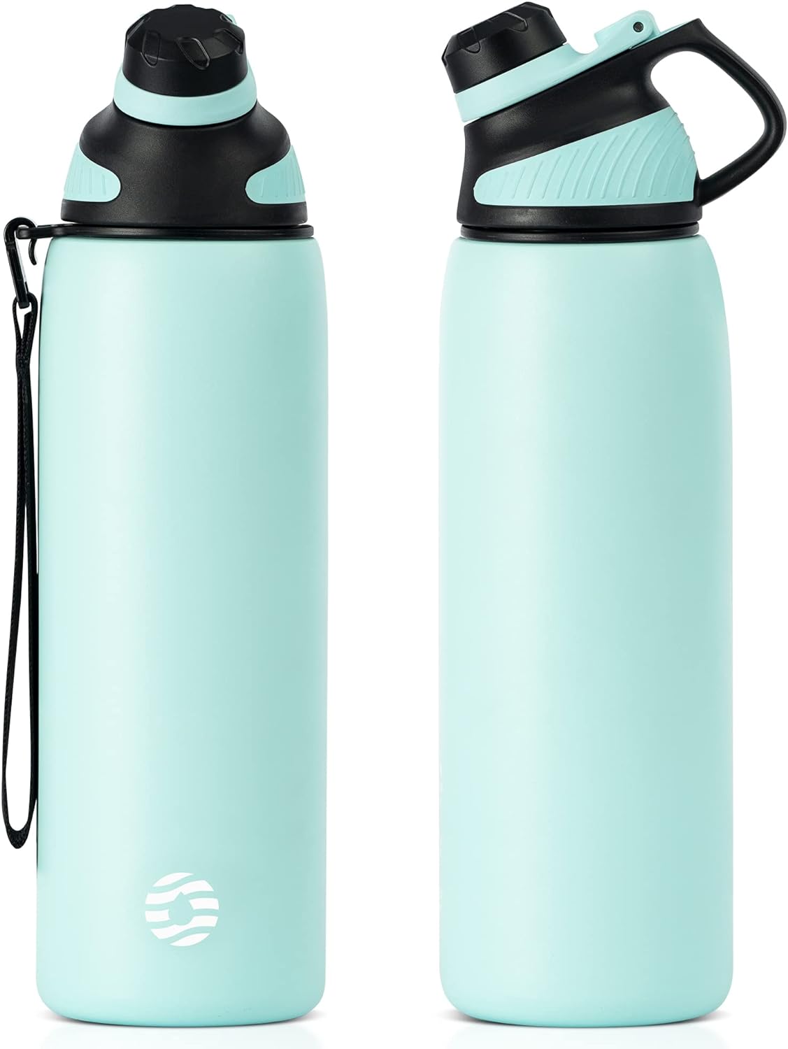 Hecho de acero inoxidable 304 apto para uso alimentario y 100% libre de BPA, ha pasado la certificación FDA y LFGB. Opción segura y duradera para deportes, camping y gimnasio.