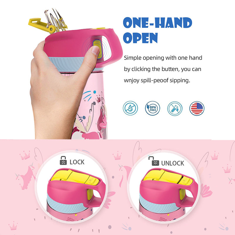 - La botella para niños FJbottle sin bpa ofrece una tapa a prueba de fugas y cierre de botón. Diseño doble a prueba de fugas, para que no tenga que preocuparse por las fugas.