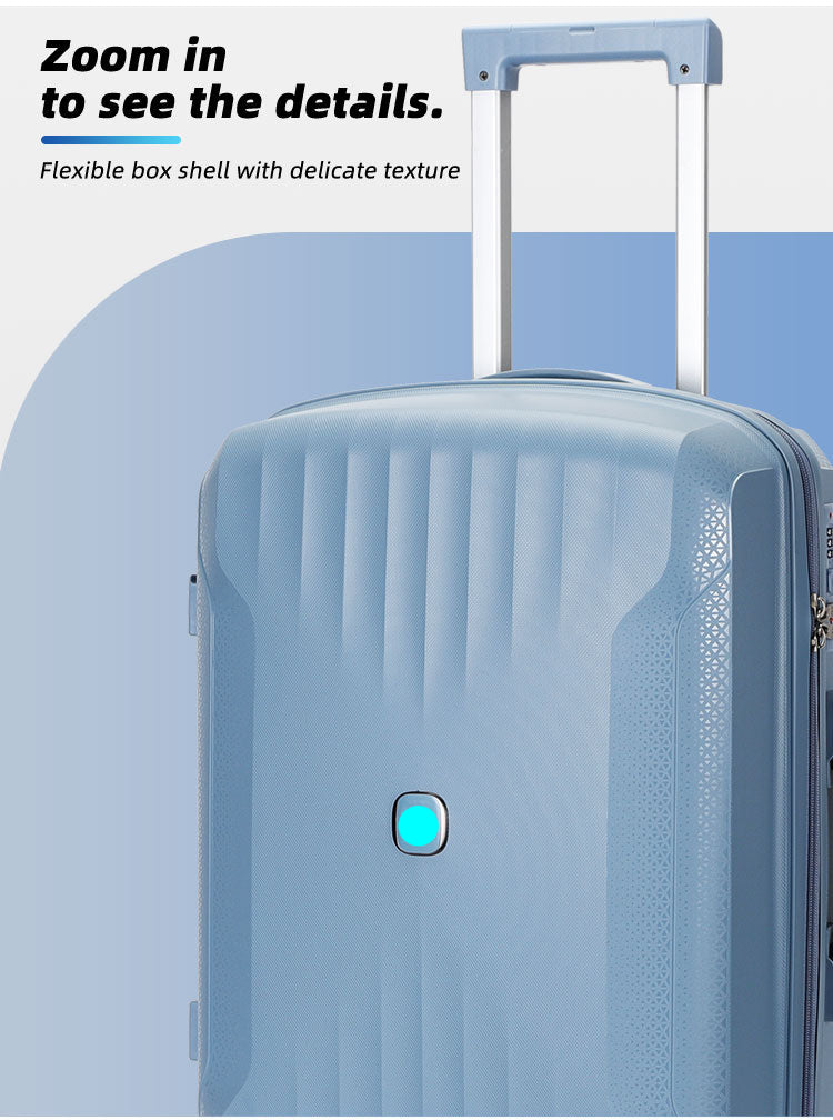 Maletas Extra Livianas y Sólidas de Diseño Contemporáneo y Funcional. Tienen Cuatro Ruedas de diseño Aeronáutico, Multi- Direccionales de 360 Grados y Silenciosas, Para poder mover la maleta sin ningún esfuerzo. Traen Cerraduras Incorporadas de Combinación de tres Dígitos. Asa Metálica Superior Retráctil para Sistema Autoportable, con botón de presión y mango ergonómico.