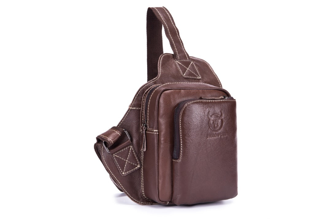 BullCaptain - Mochila cruzada de cuero XB-013-CF - Café