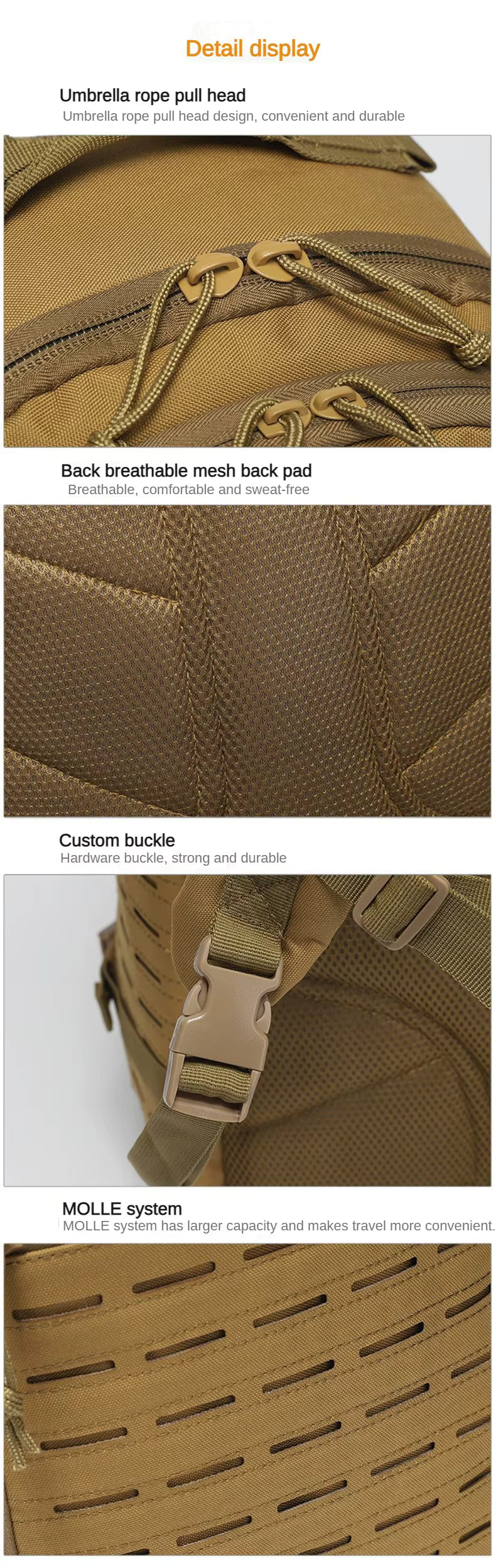 ¡Prepárate para cualquier aventura con nuestra mochila táctica militar multifunción! Diseñada para resistir las condiciones más exigentes, esta mochila es tu compañera ideal para actividades al aire libre, viajes o uso diario.