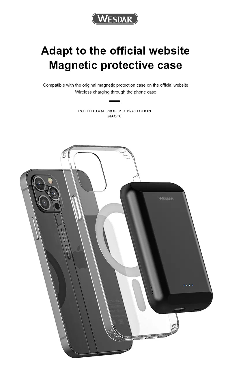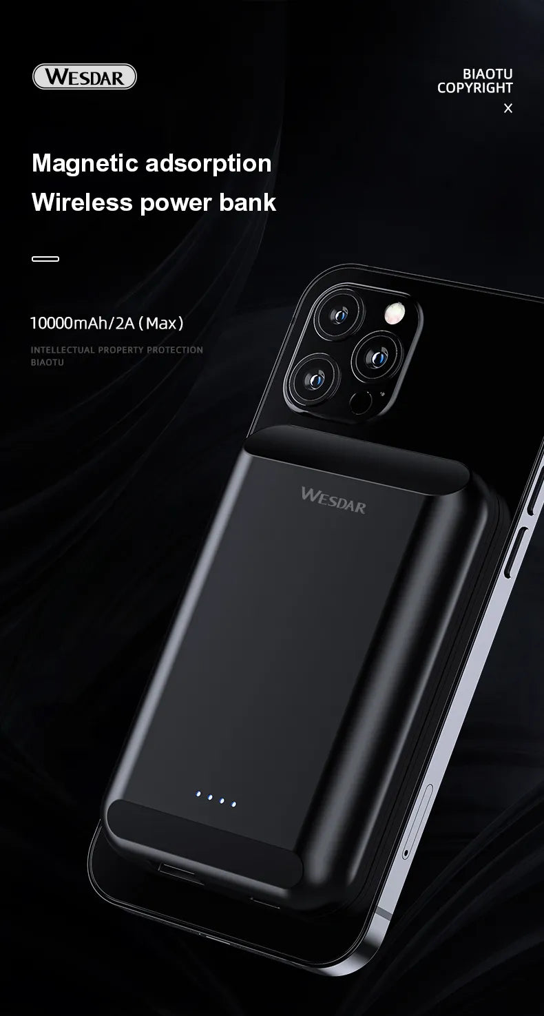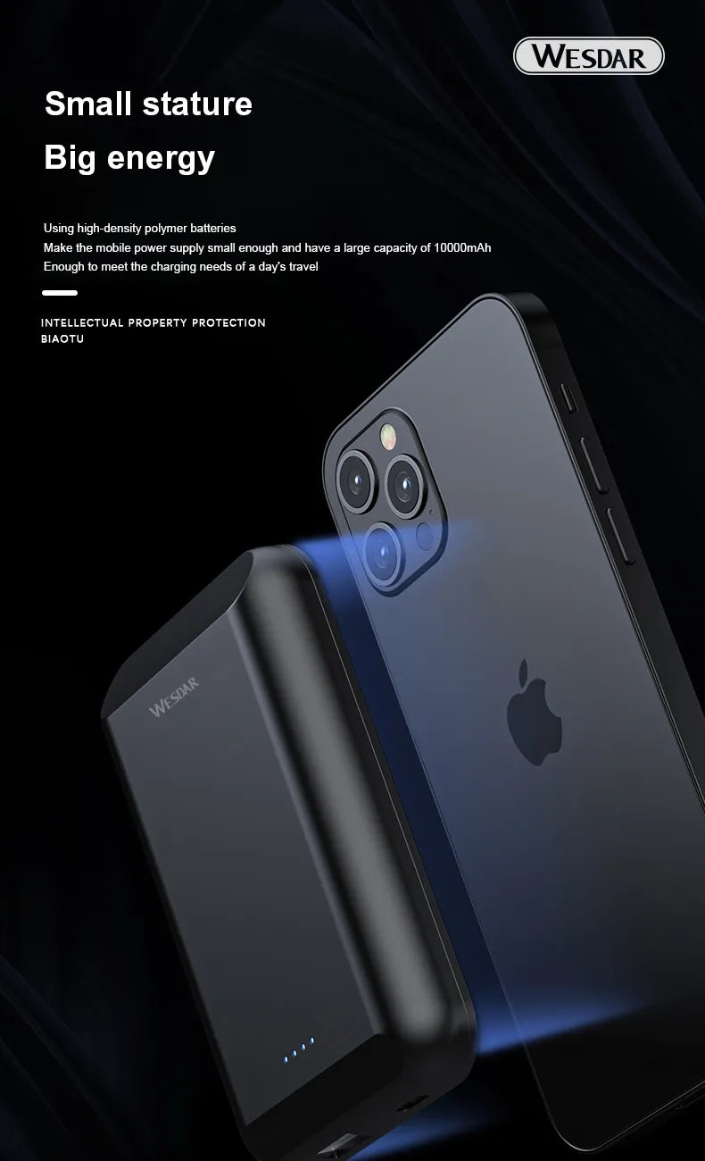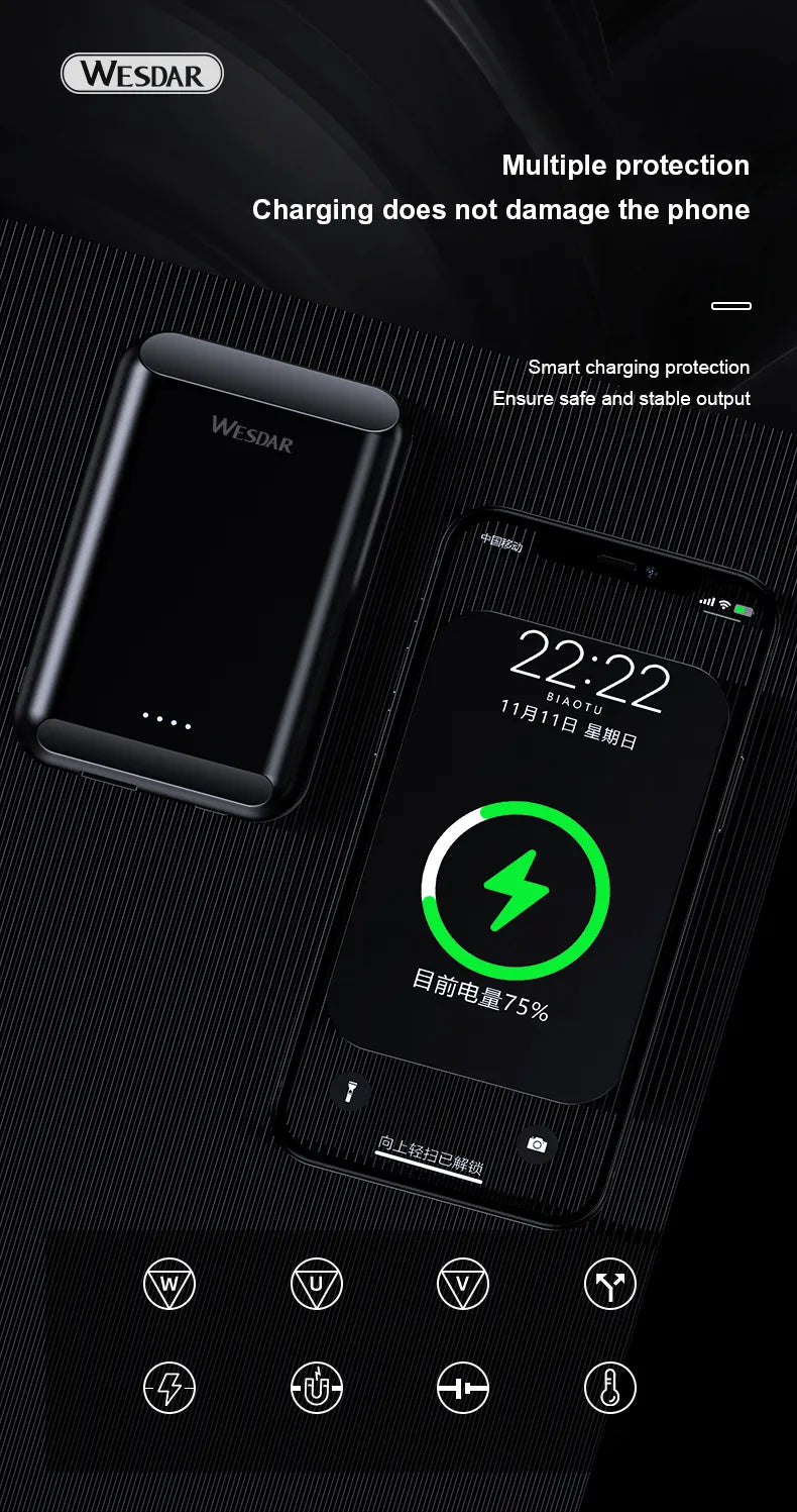 Wesdar - Power Bank 5000mAh Inalámbrico 15W Compatible 5W 7.5W 10W