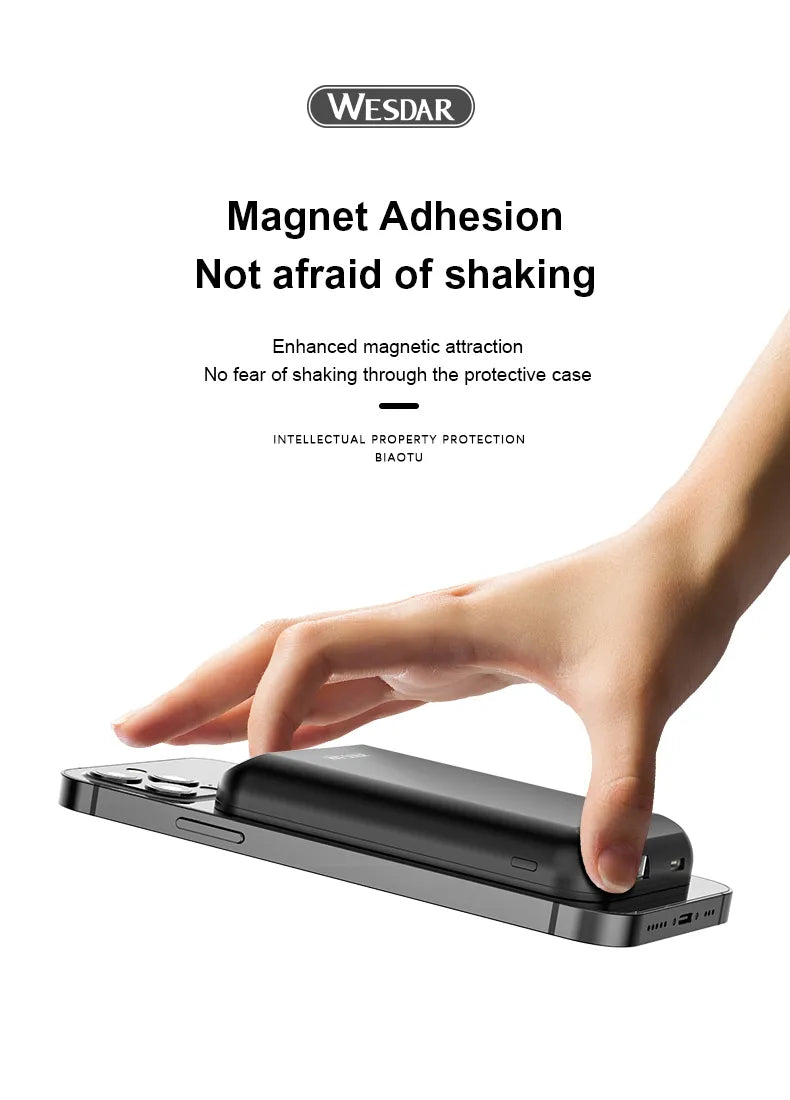 Wesdar - Power Bank 5,000mAh Inalámbrico 15W (Compatible 5W, 7.5W, 10W)