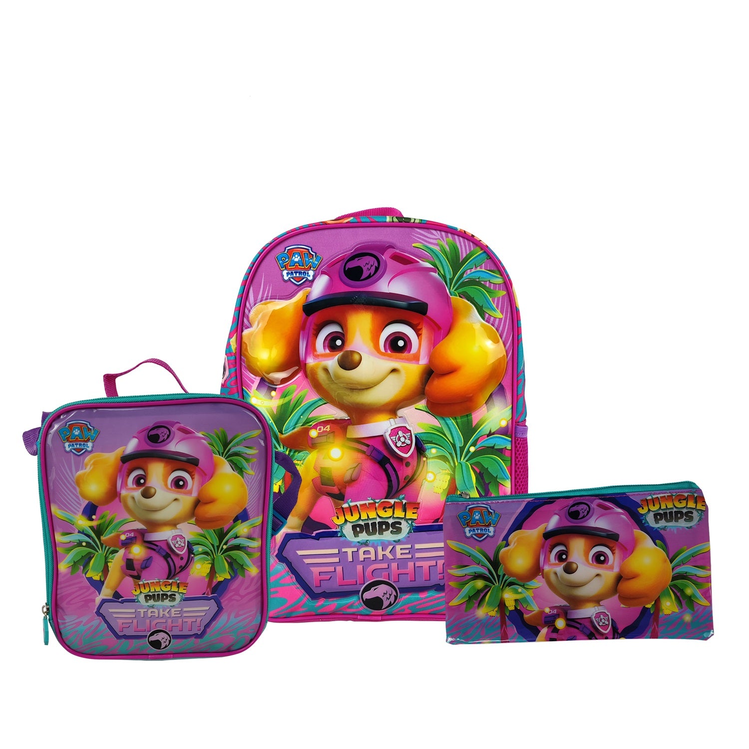 - Medidas: * Mochila: 40X30X16 * Lonchera: 23X21X9.5 * Cartuchera: 13X22X1