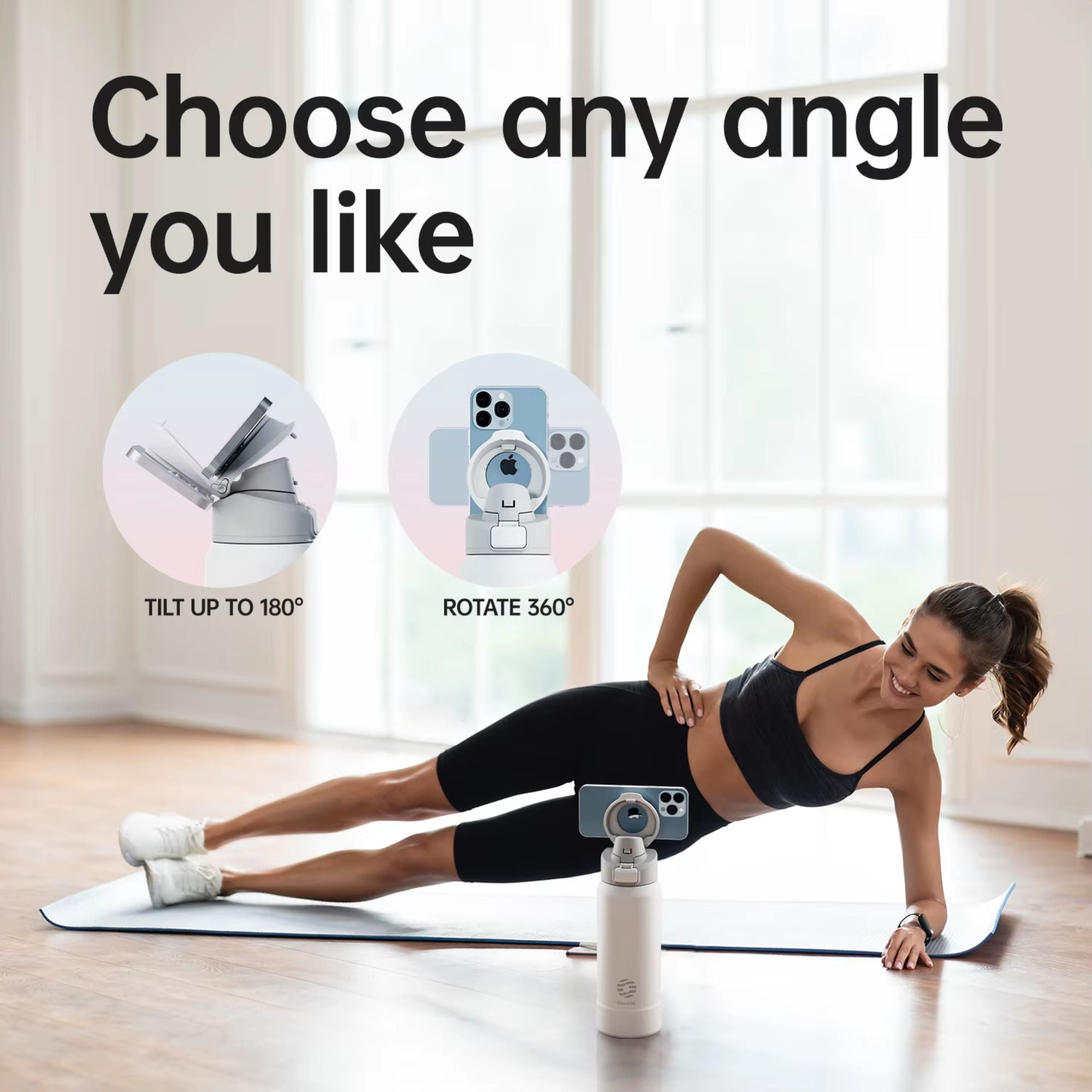 Ideal para: Deportistas, influencers, estudiantes, profesionales que teletrabajan, o cualquiera que busque una solución práctica para tener su teléfono a la vista mientras se hidrata.