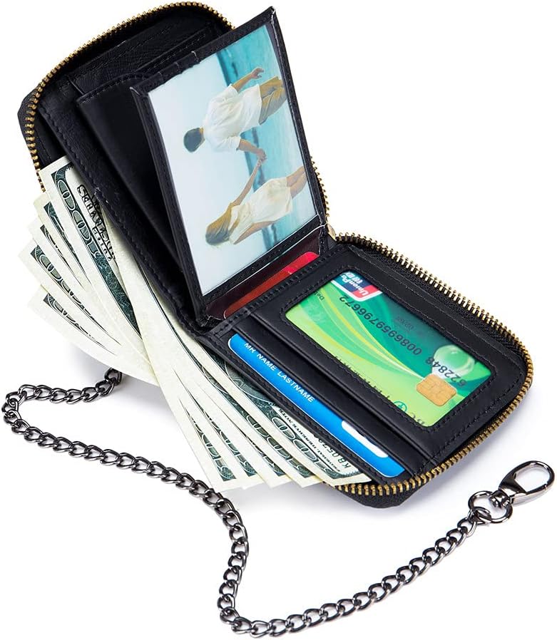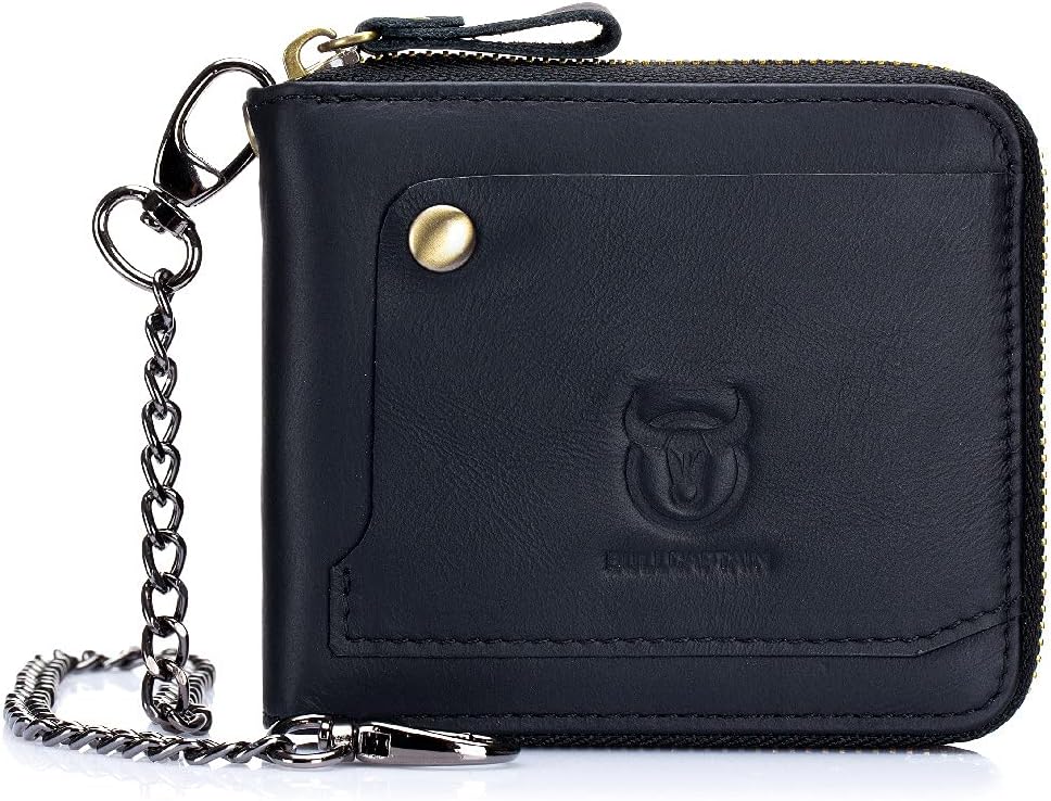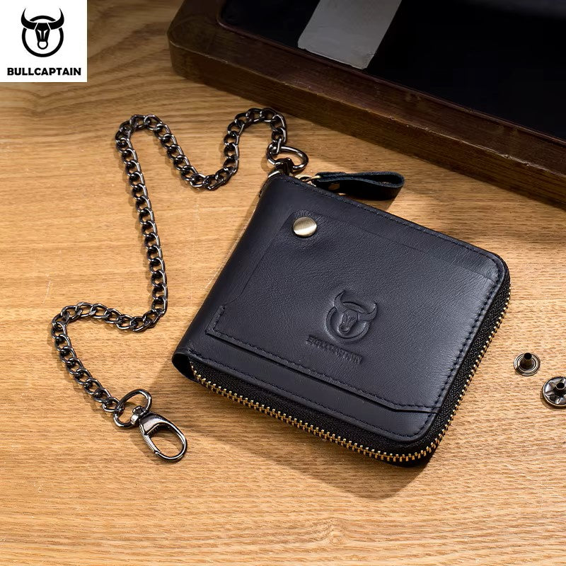 BullCaptain - Billetera de Cuero QB-022-BK Con Cadena - Negro