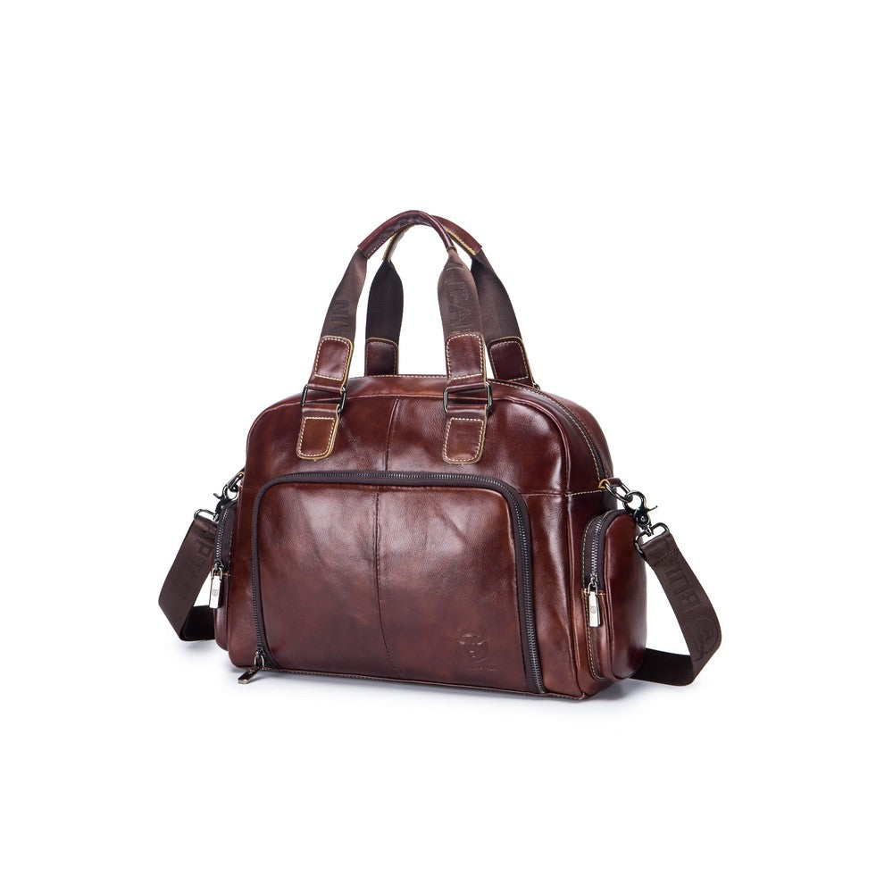 - Detalles: Marca: BULLCAPTAIN | Material principal: Cuero | Número de manijas / correas: Único | Estilo: Casual |Interior: Bolsillo con ranura Bolsillo para teléfono celular Bolsillo con cremallera Bolsillo con cremallera Compartimiento y computadora Capa intermedia | Tipo de manija/correa: Manija blanda | Ancho del artículo: 10,5 cm | Tipo de artículo: Maletines | Longitud del artículo: 38 cm | Género: Hombre | Tipo de cierre: cremallera | Exterior: Sólido | Material del forro de la bolsa: Poliéster | Peso del artículo: 1 kg | Tipo de patrón: Sólido | Tamaño: 14 pulgadas | Número de modelo: GWB047