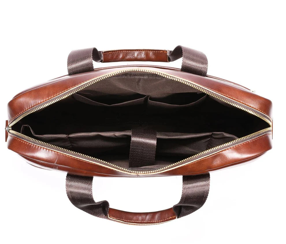 Este maletín para portátil BULLCAPTAIN está fabricado con cuero de primera calidad, lo que no solo mejora su durabilidad, sino que también añade un toque de refinamiento a su apariencia general. La rica textura y la pátina natural del cuero hacen que cada bolso sea único y muestren una verdadera artesanía.