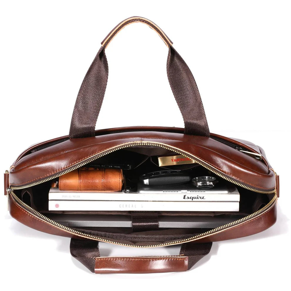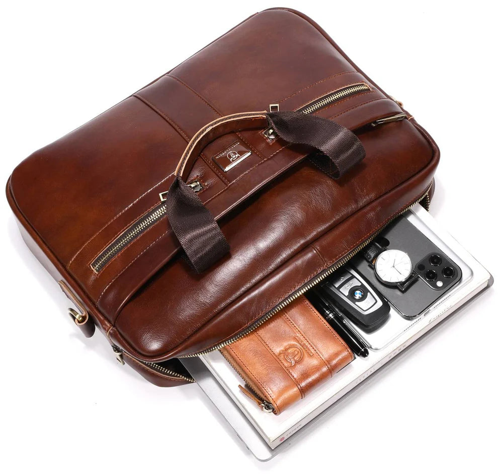Si eres un profesional que se dirige a la oficina, un estudiante que asiste a clases o un viajero que explora nuevos horizontes, el bolso de cuero para computadora portátil BULLCAPTAIN ofrece la combinación perfecta de estilo y funcionalidad. Realza tus elementos esenciales diarios con este excepcional bolso de cuero y deja una impresión duradera dondequiera que vayas.