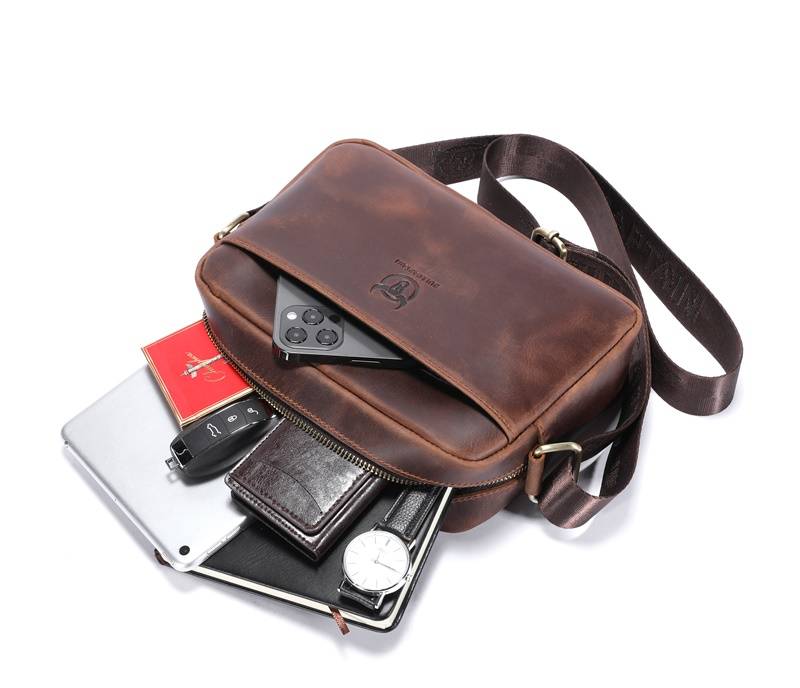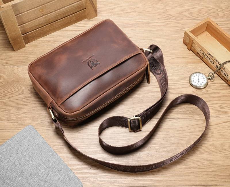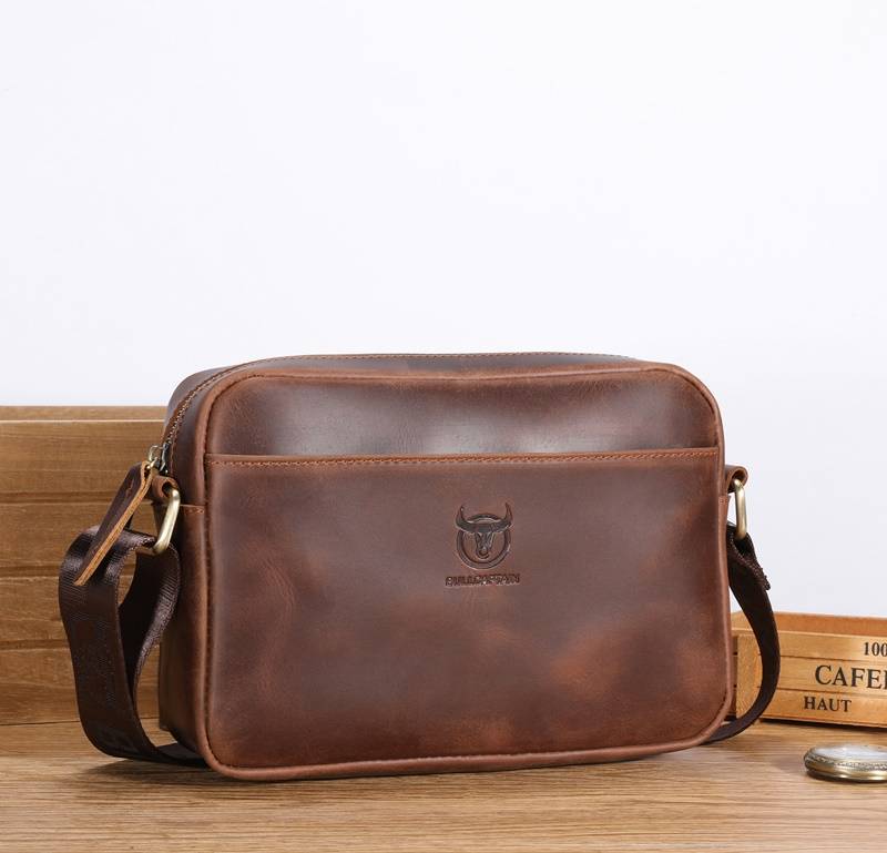 El morral de cuero para hombre de BULLCAPTAIN es un accesorio atemporal que rezuma clase y sofisticación. Está hecho a mano con cuero de primera calidad, por lo que está diseñado para durar muchos años.