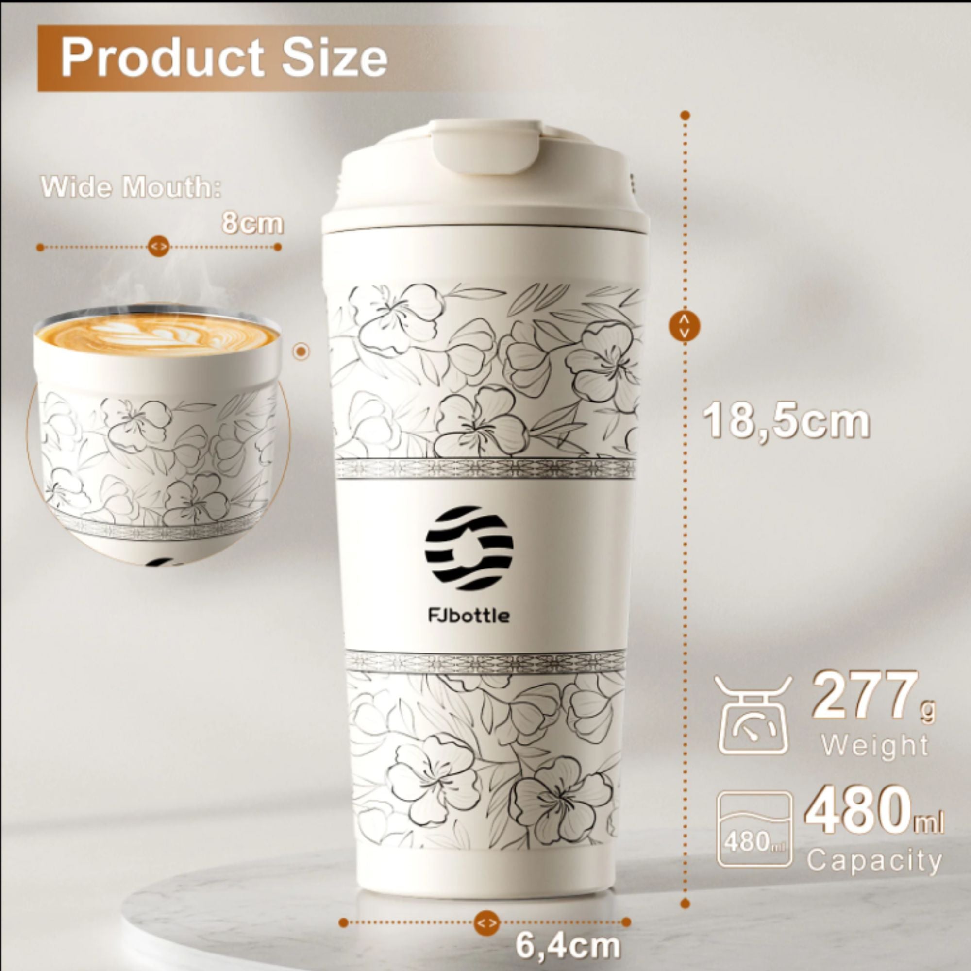- Interior: taza grande. mantendrá su bebida caliente hasta 6 horas y fría hasta 12 horas. Con una amplia apertura de 10 cm, la taza térmica es perfecta para los cubitos de hielo. La taza tiene un diámetro de base de 8 cm.