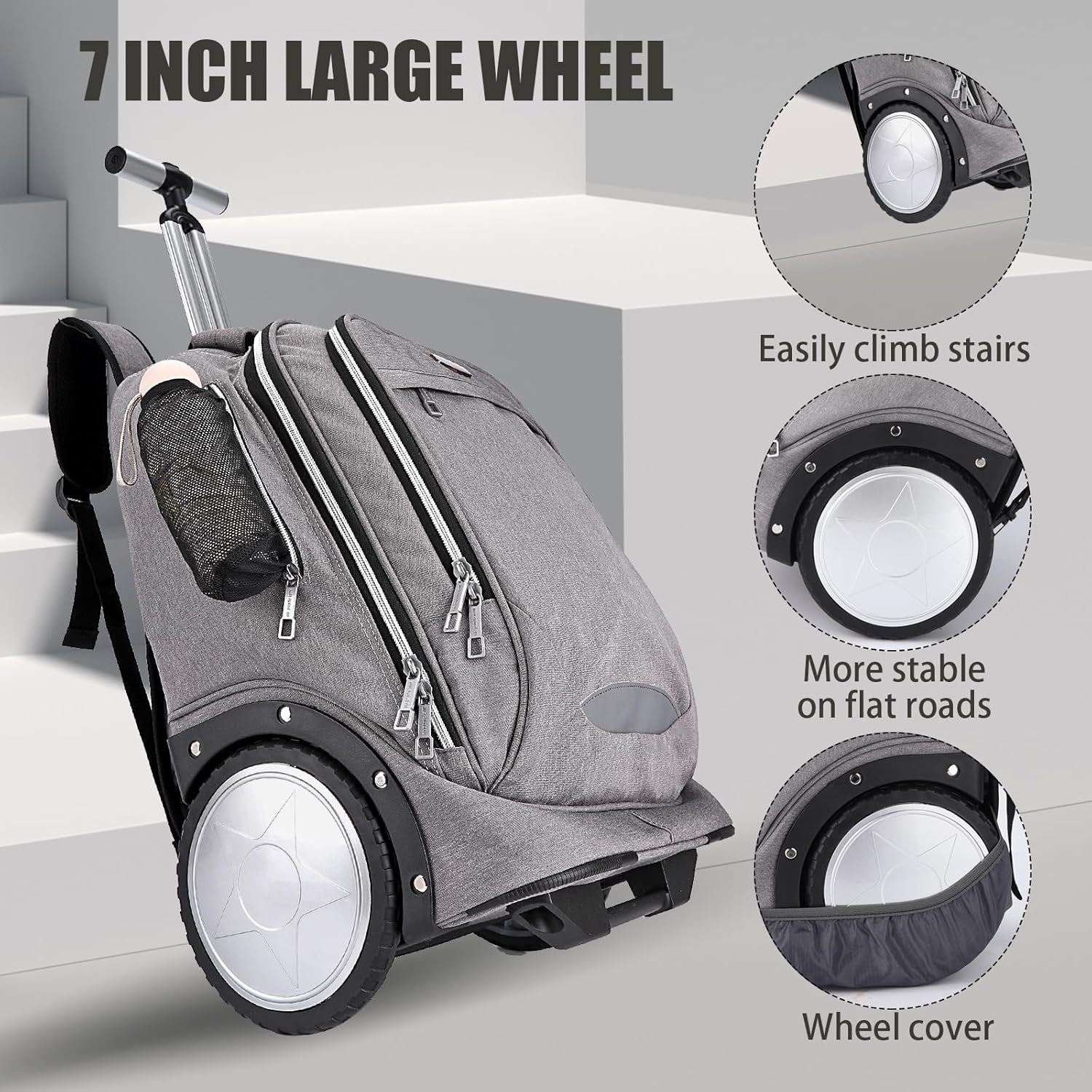 - RUEDA GRANDE DE 7 pulgadas: Con ruedas grandes con un diámetro de 18cm, proporciona una experiencia de rodadura suave para diversas condiciones de carretera y se corresponde fácilmente con escaleras. La bolsa de almacenamiento a prueba de polvo en la parte inferior de la parte posterior puede cubrir las ruedas para evitar que la ropa se ensucie.