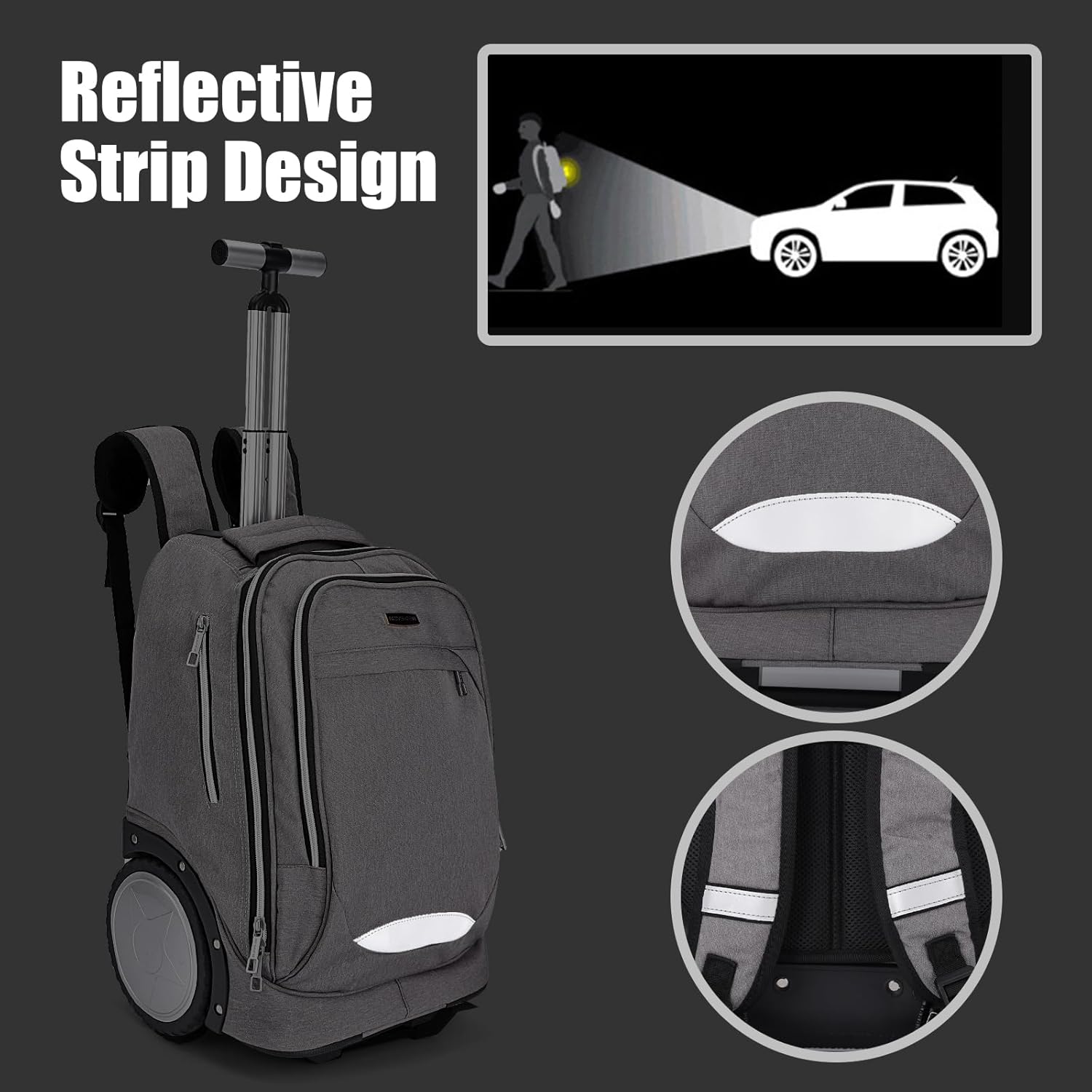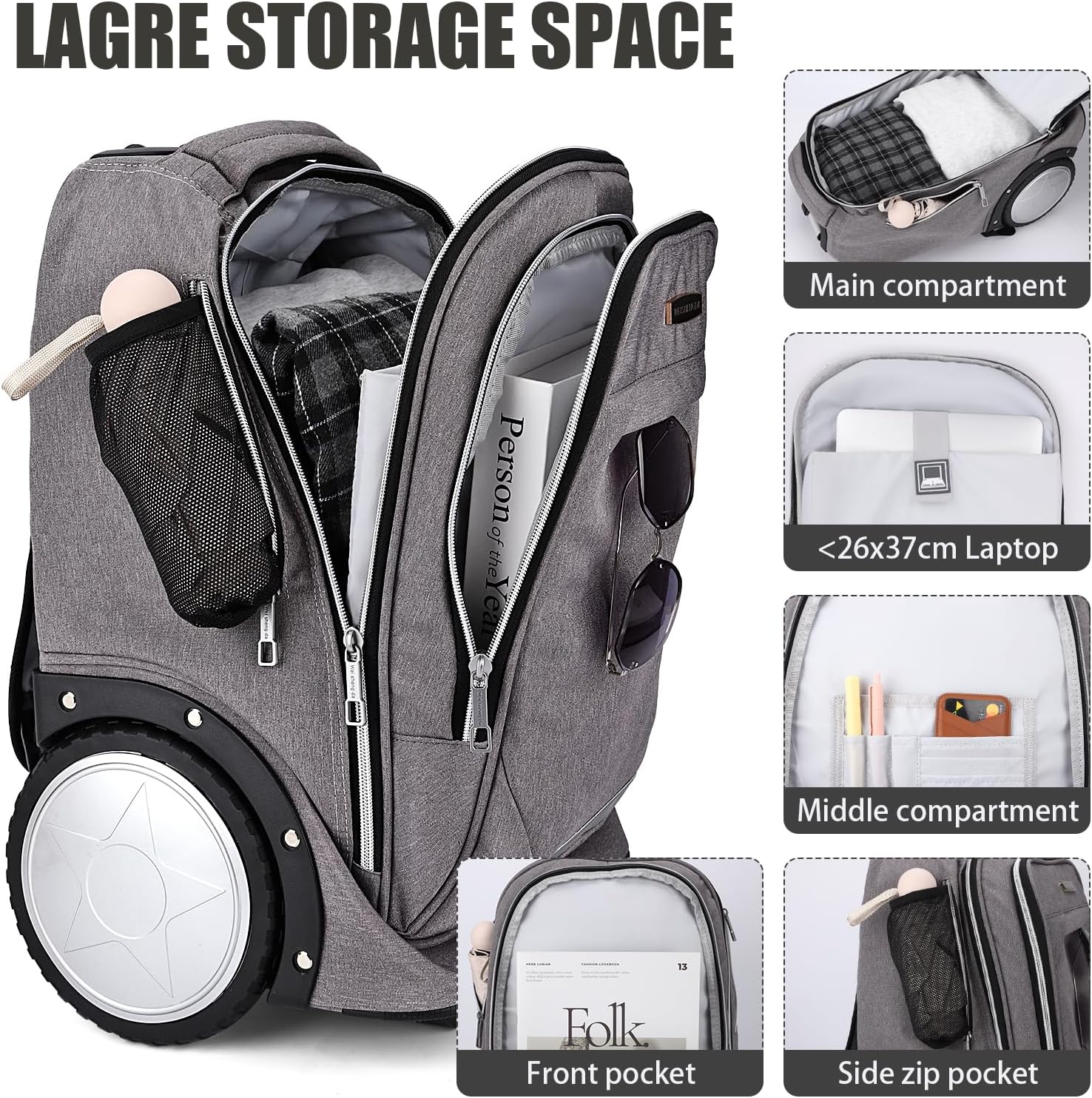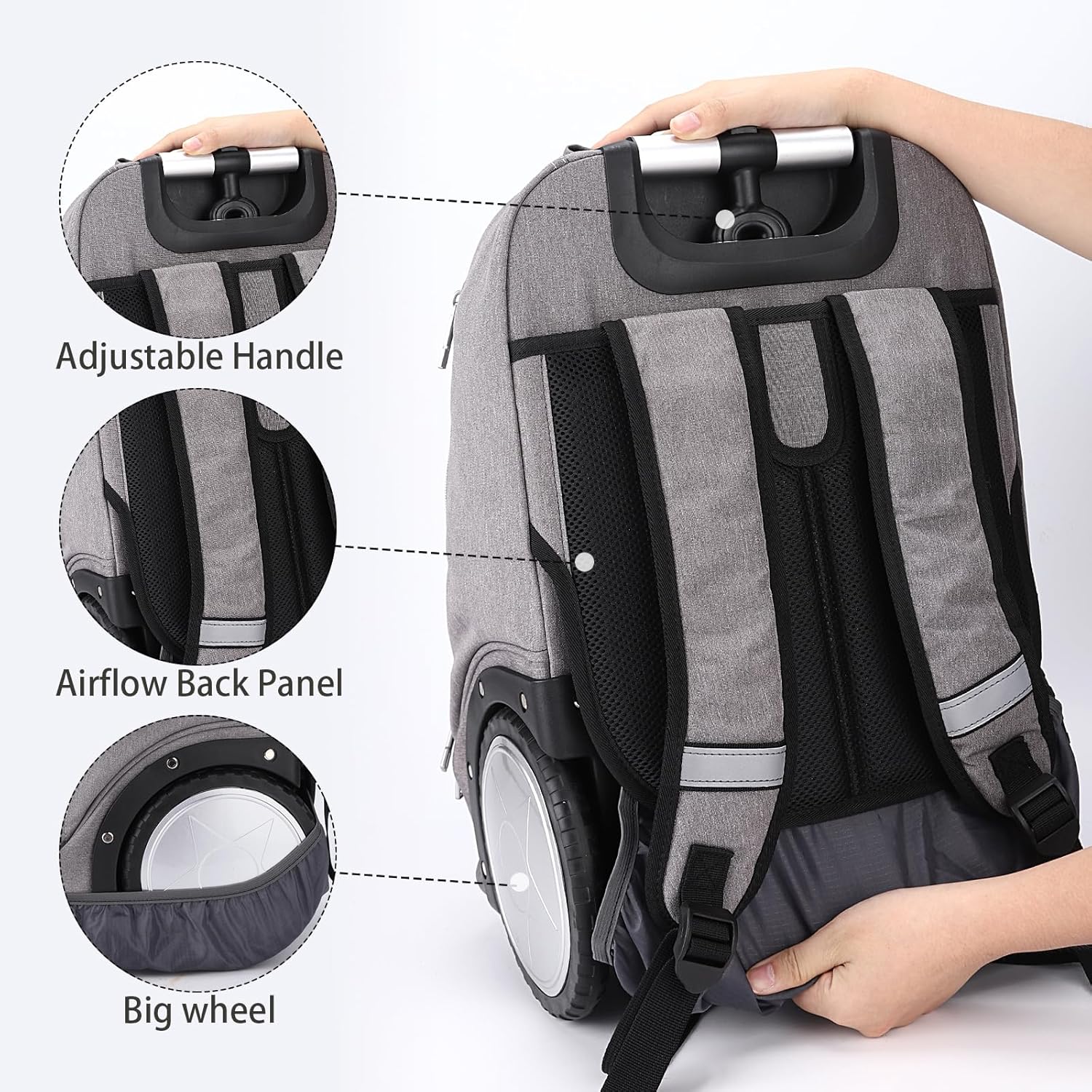 - Mochila multiusos: el diseño versátil de la mochila con ruedas es el compañero perfecto cuando llevas muchos artículos en tu viaje. Es una gran opción para mochilas de viaje, mochilas de computadora mochilas de senderismo y vuelos internacionales. Te hace más cómodo y libre en tu vida diaria, tiempo de negocios o tiempo de viaje.