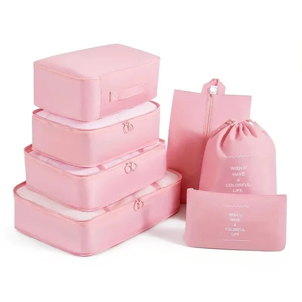 Este set con 7 organizadores de distintas medidas te permite guardar en tu valija tu ropa, zapatos y cosméticos de una manera ordenada y práctica.