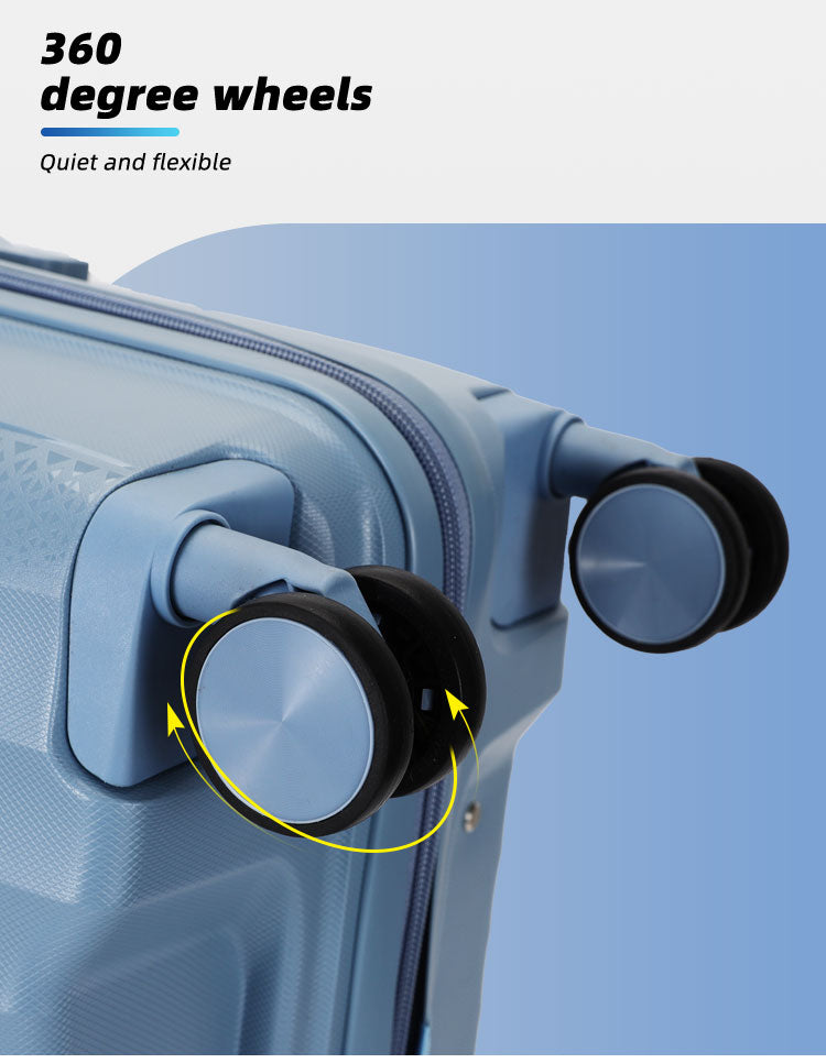 Maletas Extra Livianas y Sólidas de Diseño Contemporáneo y Funcional. Tienen Cuatro Ruedas de diseño Aeronáutico, Multi- Direccionales de 360 Grados y Silenciosas, Para poder mover la maleta sin ningún esfuerzo. Traen Cerraduras Incorporadas de Combinación de tres Dígitos. Asa Metálica Superior Retráctil para Sistema Autoportable, con botón de presión y mango ergonómico.