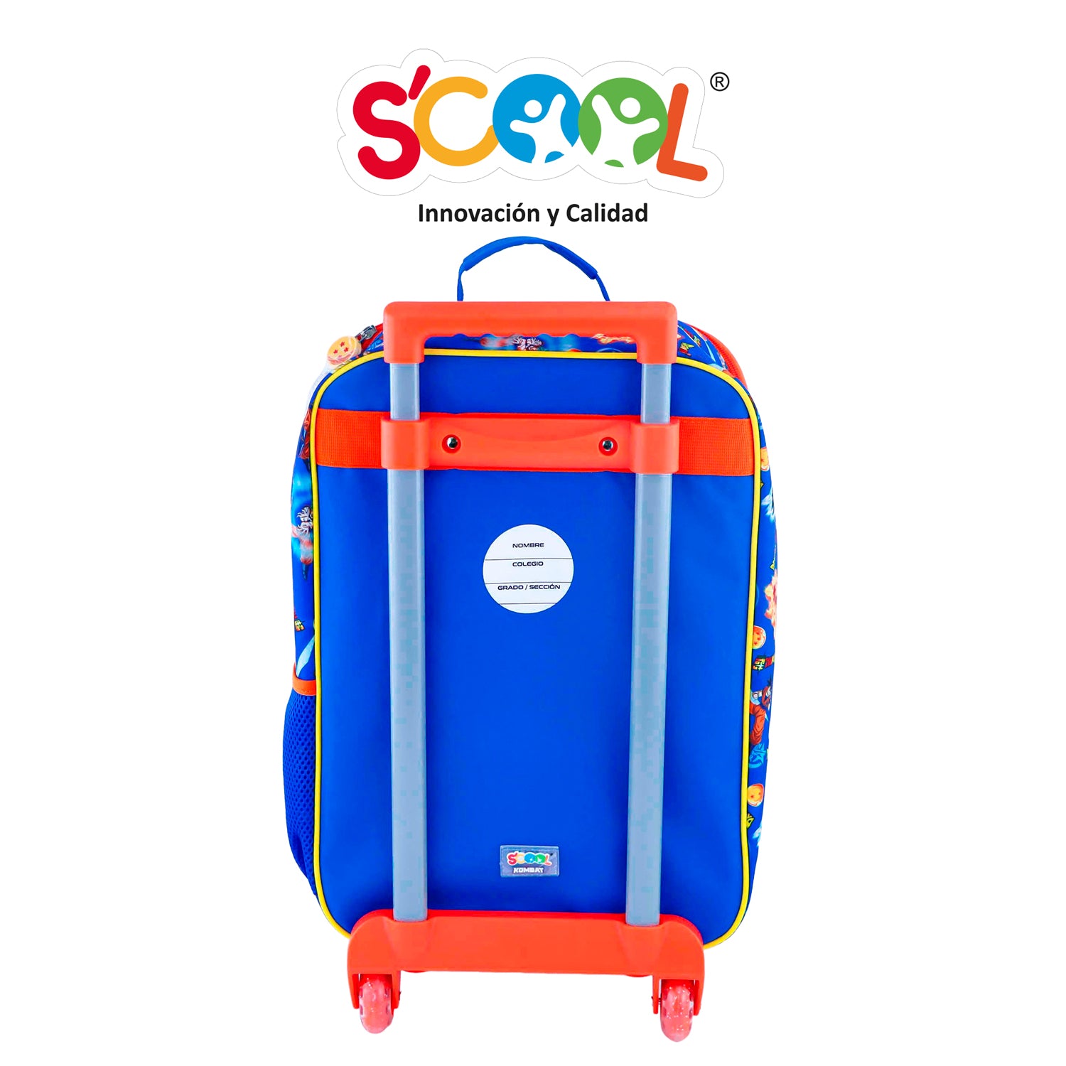 - Detalles: Maleta oficio con ruedas de silicona, forro interno con elástico, bolsillo exterior de malla para tomatodo, lonchera térmica amplia con asa y tirantes regulables y cartuchera amplia de un solo compartimiento con jalador personalizado.