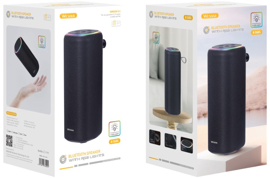 Wesdar - Parlante Bluetooth BT5.3 3W 4hrs Led Colors - Negro