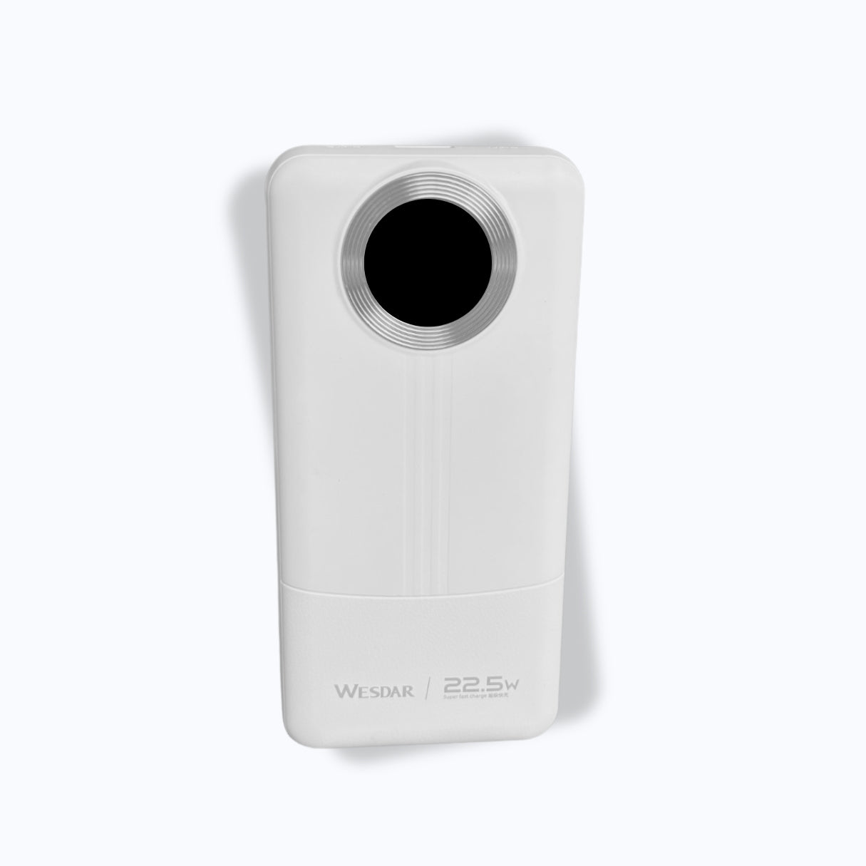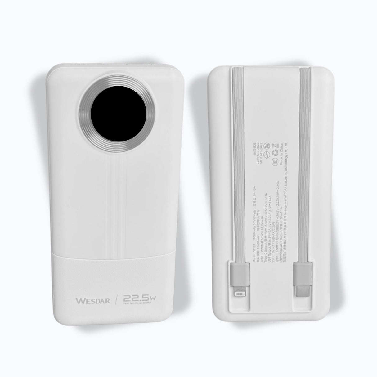 Wesdar - Power Bank 22.5W PD LED Fast Charge c/cable lightning y USB-C 20000mAh - Blanco